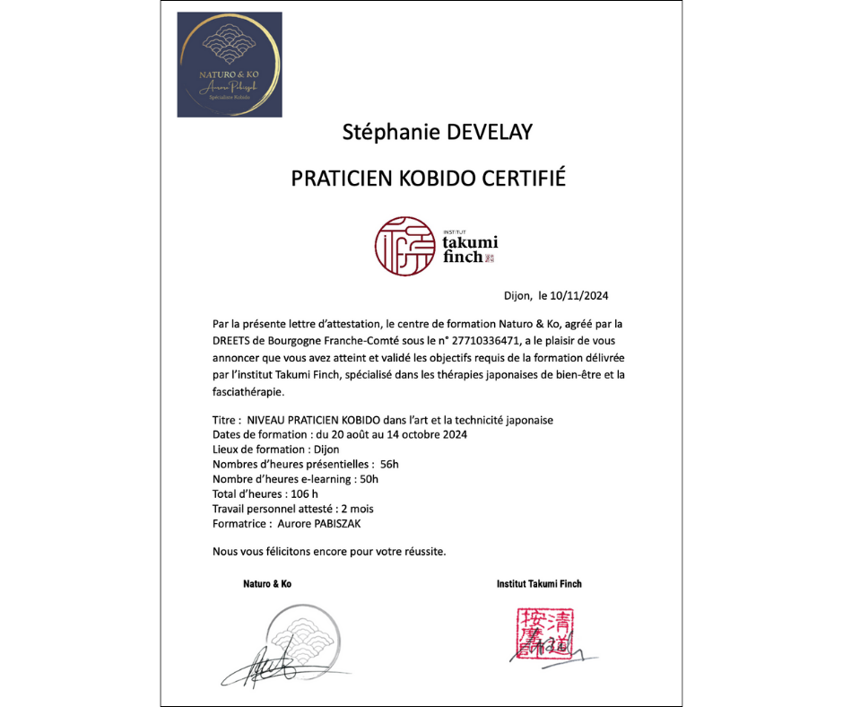 Ma formation en Kobido trouve son origine dans mon intérêt profond pour les massages du visage, une expérience sensorielle unique que j’ai toujours trouvée apaisante. Le visage, véritable miroir de nos émotions, est une zone où chaque geste de massage offre une relaxation intense et un bien-être inégalé.